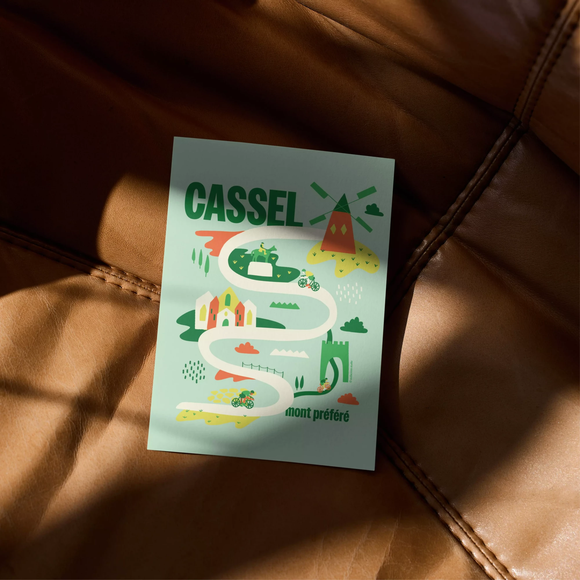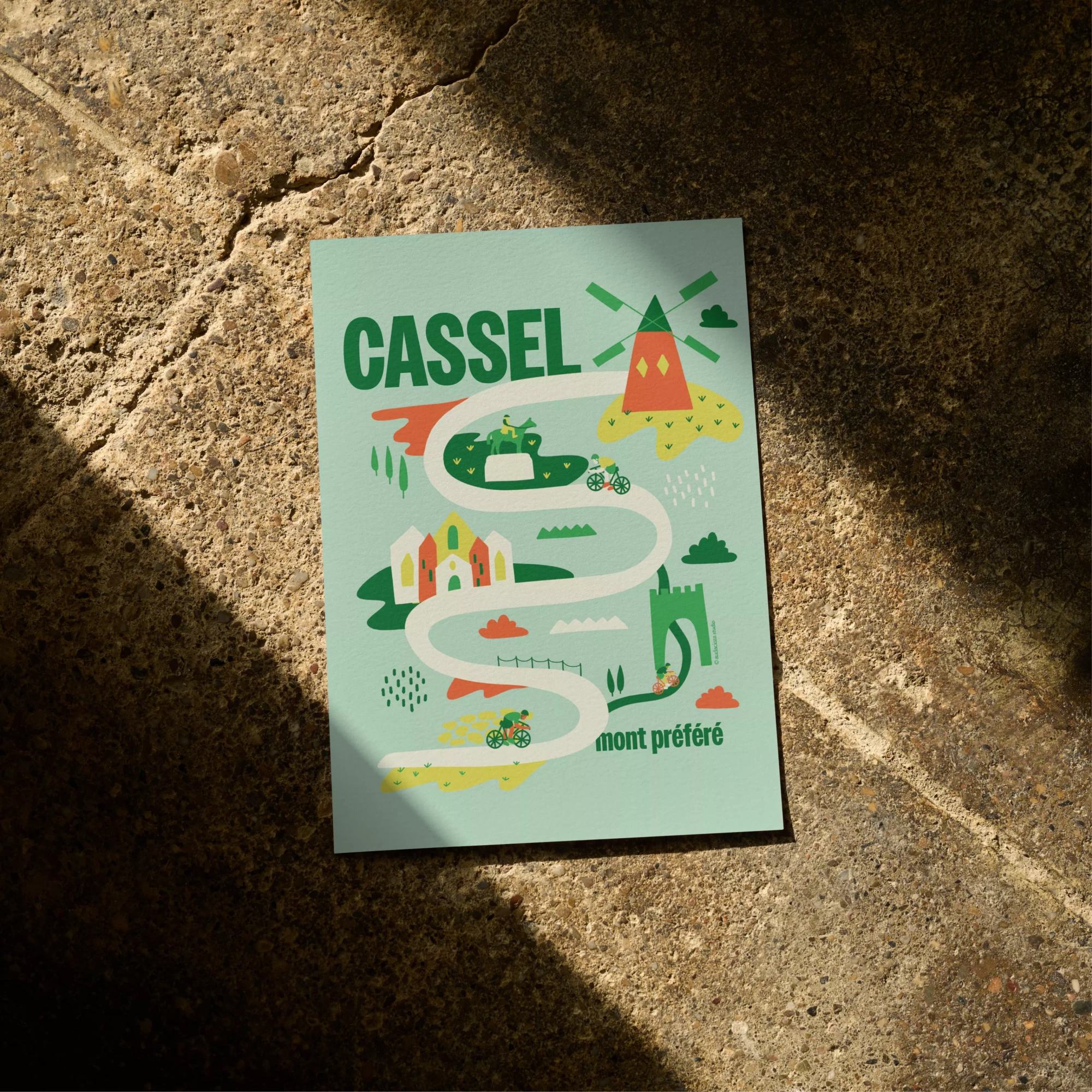 Carte postale verte. Le mont Cassel fait partie des trois monts préférés des cyclistes. Première et quatrième étapes du Tour de France, le mont Cassel représente un défi pour tous ceux qui aiment se challenger.