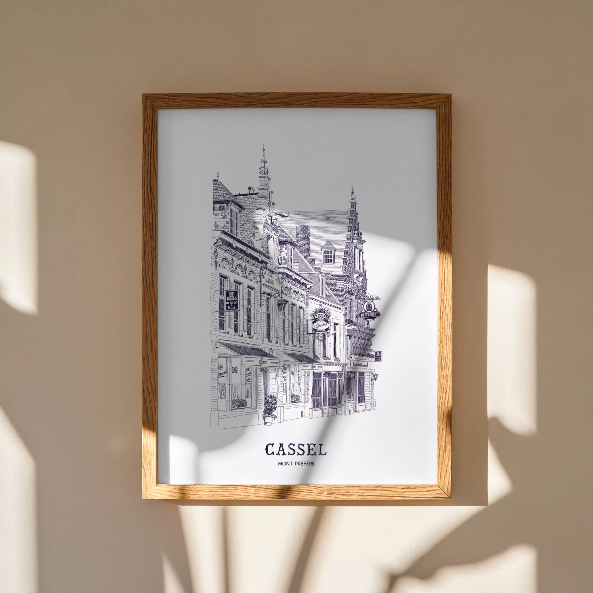 Affiche de la Grand’ Place de Cassel. La Grand’ Place est située au cœur du centre historique de Cassel. On peut y retrouver musée, terrasses, boutiques, restaurants et bien plus encore…