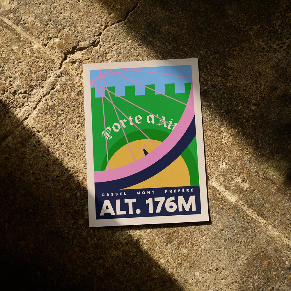 Carte postale verte. Le mont Cassel fait partie des trois monts préférés des cyclistes. Première et quatrième étapes du Tour de France, le mont Cassel représente un défi pour tous ceux qui aiment se challenger.